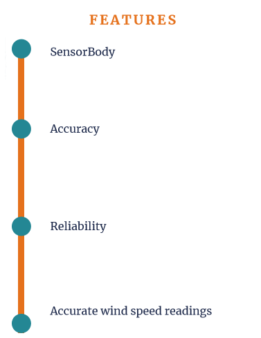 Wind Speed Sensor is designed with rugged components stand up to hurricane force wind yet is sensitive to a light breeze. It includes sealed bearings for long life. The range and accuracy specifications have been verified in wind‐tunnel tests. In areas where icing of the anemometer is a problem, drip rings deflect water from the joint between moving parts.